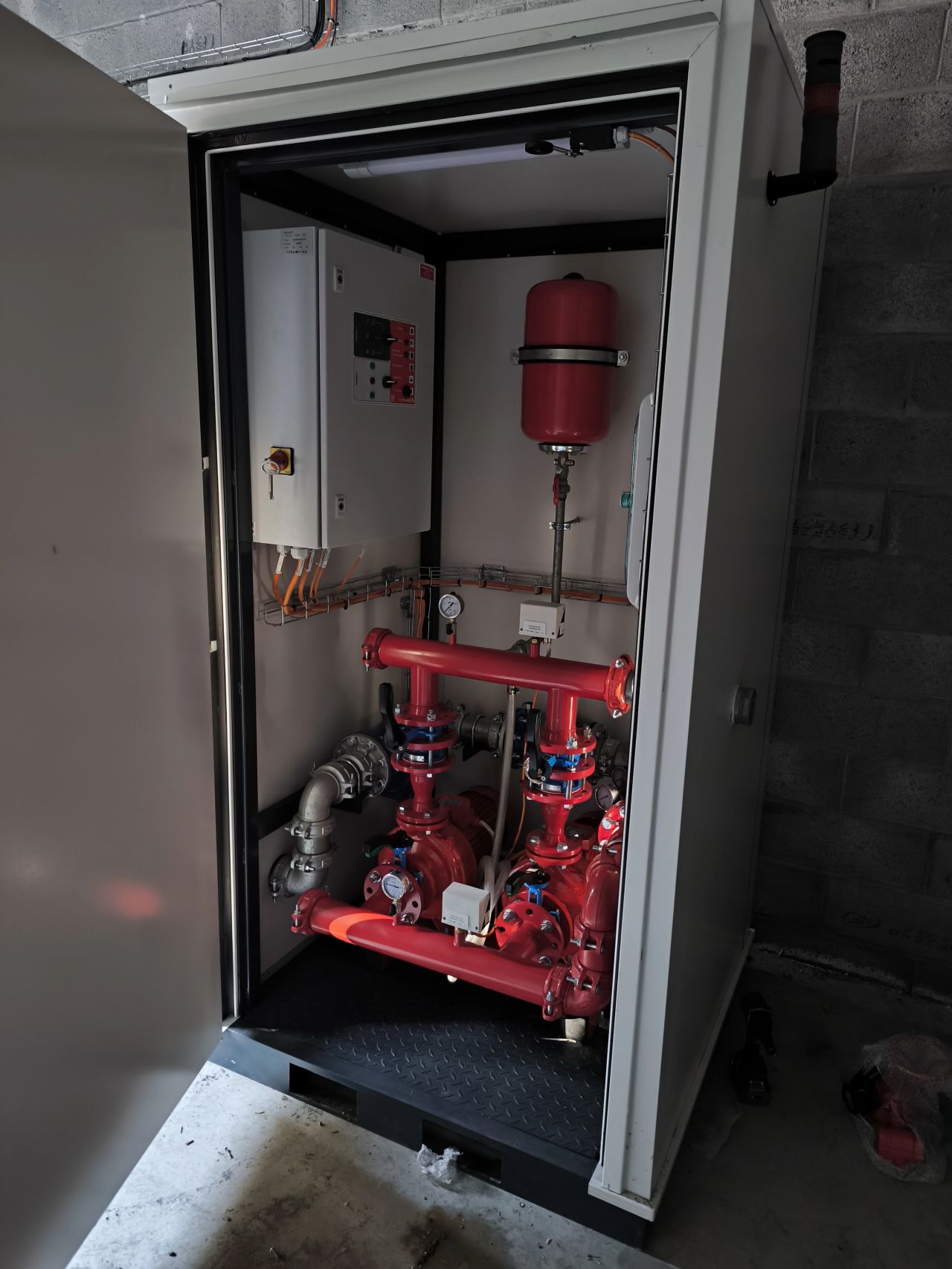 Les Établissements Recevant du Public sont soumis Ă des obligations strictes en matière de sĂ©curitĂ© incendie. Pour rĂ©pondre Ă ces exigences, nous avons conçu et livrĂ© une cellule incendie M intĂ©grant un surpresseur 18-45, dimensionnĂ© pour alimenter un rĂ©seau de 20 RIA (Robinets d’Incendie ArmĂ©s).